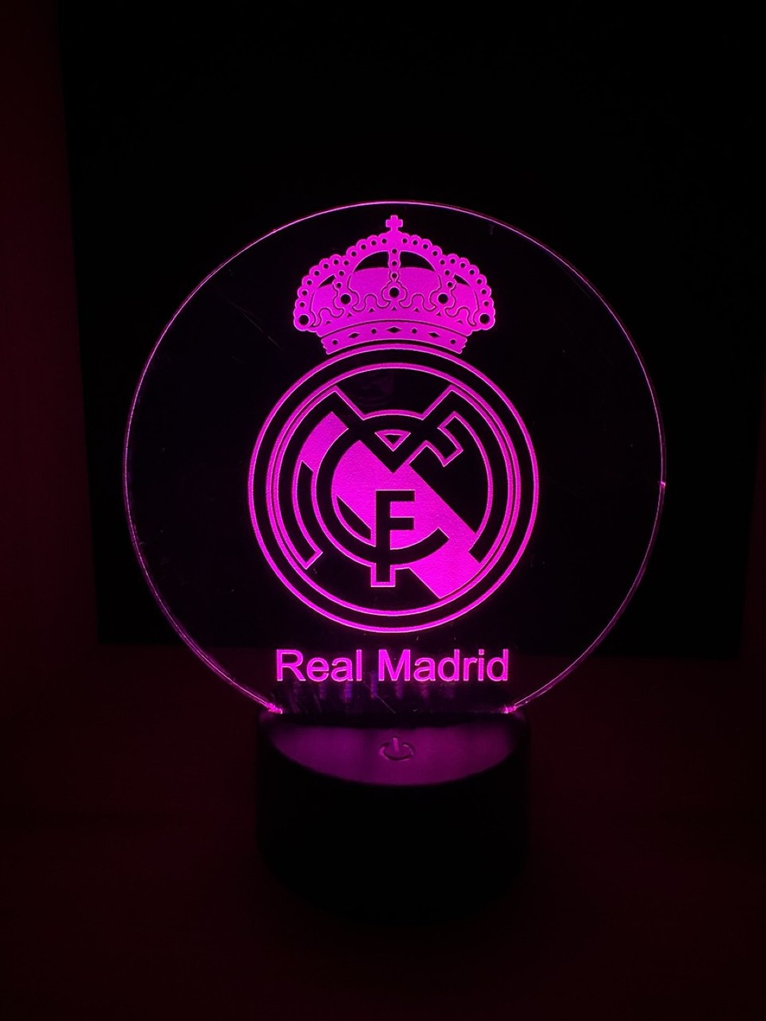 Haz que tu habitación o espacio favorito brille con estilo con esta lámpara LED personalizada del Real Madrid. Ideal para fans del equipo que quieren decorar con un toque original y moderno.